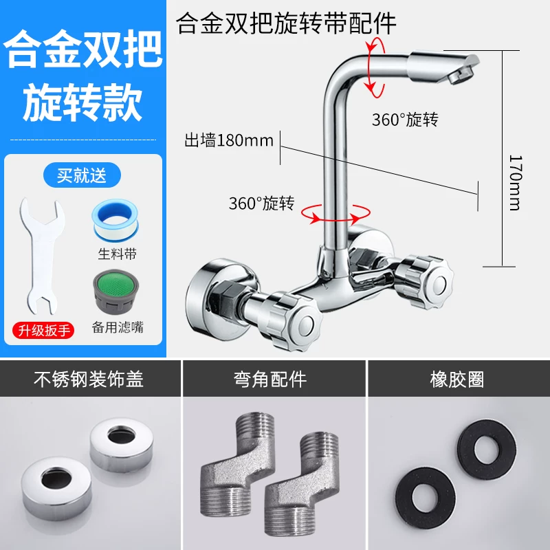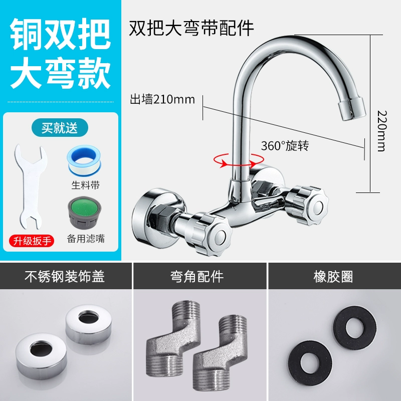 vòi nước gắn tường Chậu rửa bát nhà bếp bằng đồng thau tay cầm đôi vòi nóng lạnh treo tường bể giặt ban công chậu rửa van trộn vòi lạnh gắn tường vòi nước âm tường Vòi gắn tường