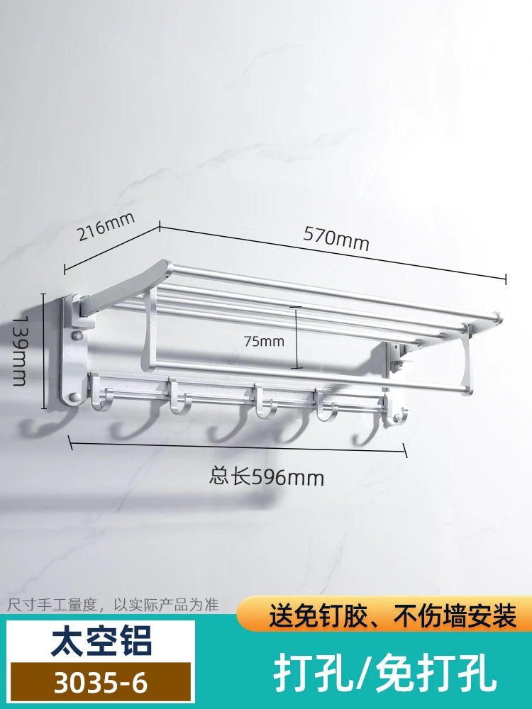 Không gian phòng tắm bằng nhôm giá treo khăn không cần đục lỗ phòng tắm có giá để đồ phòng tắm mặt dây chuyền giá treo khăn vệ sinh có giá để đồ móc tròn phơi đồ em bé Móc treo đồ