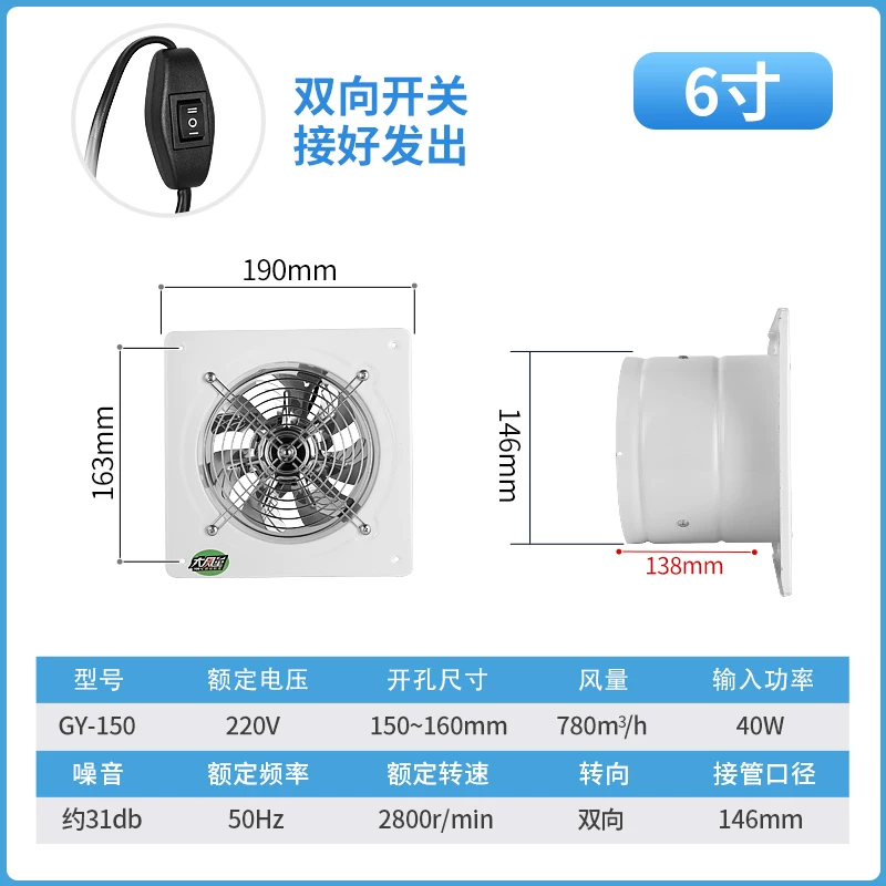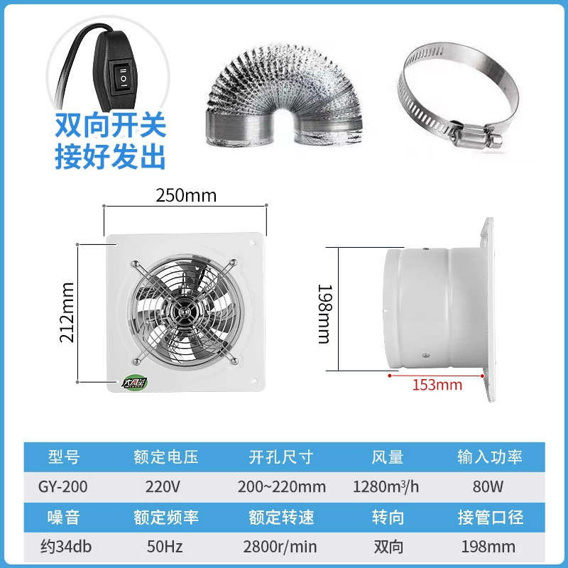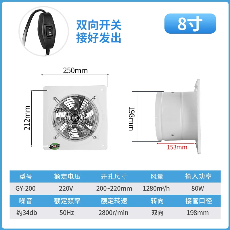 Quạt hút hai chiều nhà bếp quạt thông gió treo tường phòng tắm 6 inch 8 inch 10 inch 12 inch quạt hút mạnh mẽ để hút khói dầu các loại quạt hút mùi nhà bếp quạt hút mùi panasonic Quạt hút mùi