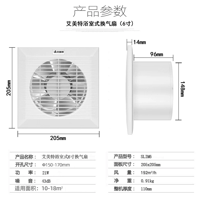 quạt hút khói Emmett quạt thông gió phòng tắm tường kính cửa sổ thông gió quạt thông gió nhà vệ sinh quạt hút mạnh câm quat hut mui quạt hút bếp gia đình Quạt hút mùi