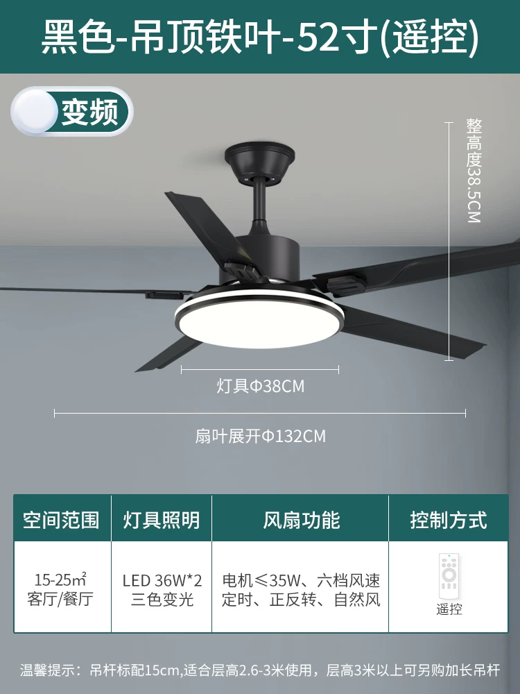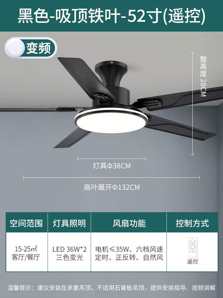 Tên sản phẩm: Quạt trần trang trí (quạt đèn) có đèn LED cố định (điều chỉnh độ sáng không cần cổng điều khiển, loại gắn trần, module LED chiếu sáng chung, cấp Ⅰ, IP20, thích hợp lắp đặt trực tiếp trên bề mặt vật liệu dễ cháy thông thường)
