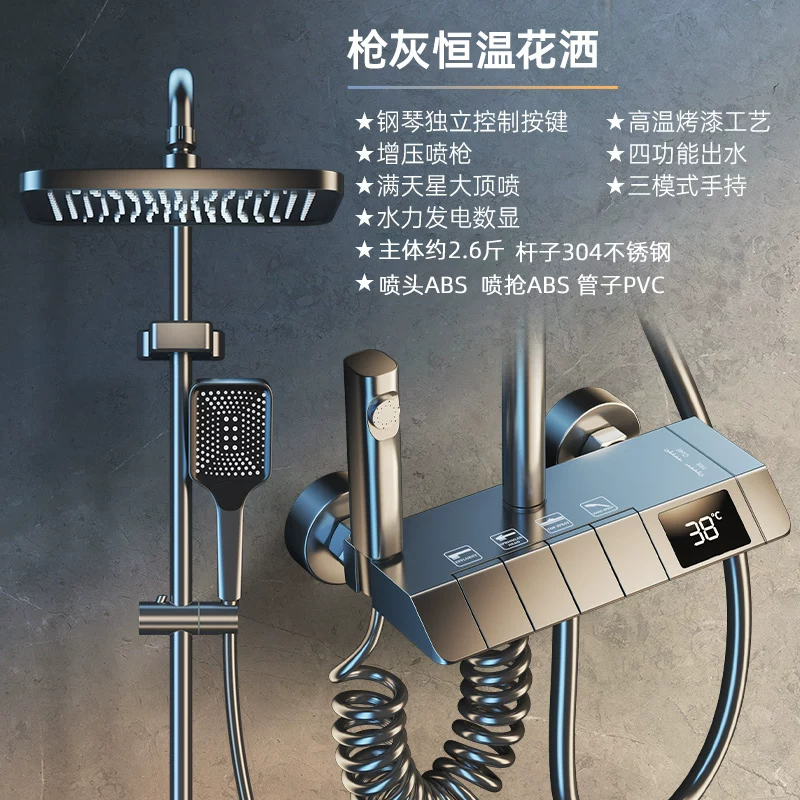 Tất cả đồng nhập khẩu nhiệt độ không đổi màn hình hiển thị kỹ thuật số mưa bộ nhà thông minh phát sáng siêu tăng áp đàn piano khí quyển ánh sáng súng màu xám vòi sen tắm nóng lạnh vòi sen cây inax Vòi hoa sen